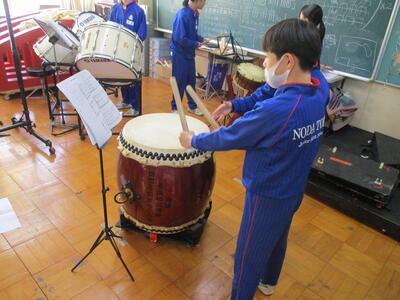 東部中の伝統である「祝いの手打ち」。この手打ちも3年生を送る会で1,2年生へとバトンが引き継がれます。手打ちには”太鼓”の担当者がいます。今日は1,2年生から立候補したメンバーが初の太鼓練習に取り組みました。