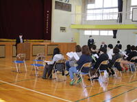 全体会では、校長が今年度の振り返りとまとめを、生徒指導主任から春休みに向けた生活面の話を、進路指導主任が今年度の入試状況と来年度についてを、安全主任から自転車に関することについて、を話させていただきました。