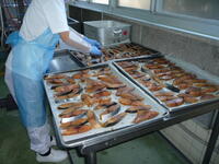 アセロラゼリーは、3年生のリクエストでした。朝一番に、作りました。また、「いなだ」は船橋市で水揚げされたものを下味を漬けて焼いて、タレをかけました。今日は「いなだ」の他に、鶏肉・切干大根・里芋・大根・人参が千葉県産で、発芽玄米・小松菜・白菜が野田市産でした。給食では、地産地消に努めています。