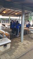 1学年校外学習は、雨もやみ、飯盒炊さんを10:00からスタートしました。食材を切る係、かまどの火起こしの係など各係分担を行い、美味しいカレーを目指しグループごとに準備に取りかかりました。その様子をご紹介致します。