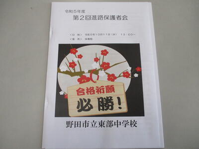校長からも話があったとおり、受験は本人の頑張りと保護者の支えで乗り切ることになりますが、学校職員全員も、保護者の方々と連携して、生徒それぞれの進路実現に向けて尽力していきます。いっしょに頑張りましょう!