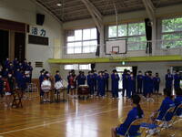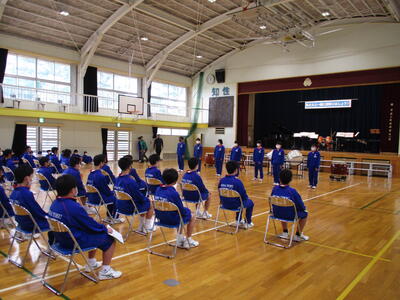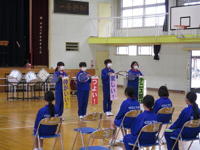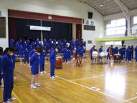 圧巻だったのは、2,3年生の「祝いの手打ち」です。体育館充に響き渡る音の迫力に、1年生も驚いている様子でした。息ぴったりの東部中生を見せてもらいました。