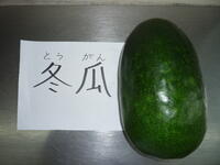 今日のスープは、沖縄産の冬瓜を使いました。冬瓜は、濃い緑色をした楕円形の野菜です。調理員さんが一生懸命、冬瓜の堅い皮を剥いてくれました。緑色の皮を剥くと、中身は白い色をしています。火が通ると、透き通った色になります。