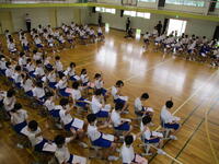 〇2年生はテストの雰囲気には慣れています。それでも、気の抜けた感じはなく、手際よく余裕を持って試験用紙を配付し、黙想しながら集中力を高めていました。手応えはどうでしょうか。ぜひ聞いてあげてください。