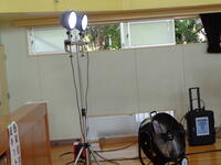 <用具の設置に動く> <テント・放送機器の準備> <優勝盾>