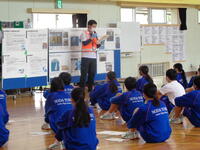 <リーダーの発表の様子> <集中力のある東中性> <学校長の話>