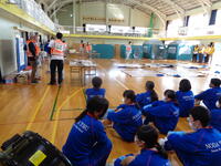 学校では、揺れを感じたら机の下に頭を隠すなど自分の身を守ることを再確認しております。「第1次避難行動(緊急事態に遭遇したら1秒でも早く安全な場所に避難すること)」を各自の判断でとるために、「あわてず」「さわがず」校内放送の指示をよく聞き落ち着いた行動をとるように全校で確認しました。