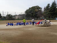 <朝の活動の様子> <活動前にグランド整備> <位置・段取りの確認>