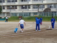 <グランドの石拾い> <グランド準備> <最終係打ち合わせ>