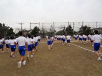 霧のかかった朝でしたが、徐々に晴れ、快晴となりました。3年生の応援団を初めとしたリーダーが指示を出し、係がそれぞれの役割を確認しながら担当種目の仕事を進めました。徒競走やレク走は1~3レースを実施、中距離走は、女子200m(本番は800m)、男子300m(本番は1500m)を実施し各係の動きを確認し、本番への準備としました。