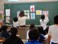 英語では、「福笑い」を利用した授業を行いました。最初は「英語は嫌い!」と言っていた児童も最後は笑顔で授業を受けていました。また、理科では、①マッチのつけ方 ②エタノール・酸素・水素を使っての点火実験(量は少量です)を行いました。児童は明るく、反応が良く、笑顔で、集中力も高い授業となりました。