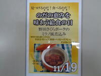 明日の給食は、「野田の恵みを味わう給食の日」「食育の日(毎月19日)」となります。