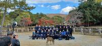 奈良公園班別行動が始まりました。若草山を背景に学級ごとの記念写真を撮り、南大門をくぐり、東大寺へ。世界一古い木造建築でもある東大寺は、南大門から見てもその大きさがわかる迫力があります。班別行動のスタートの様子をご紹介致します。