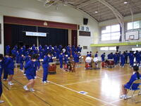 圧巻だったのは、2,3年生の「祝いの手打ち」です。体育館充に響き渡る音の迫力に、1年生も驚いている様子でした。息ぴったりの東部中生を見せてもらいました。