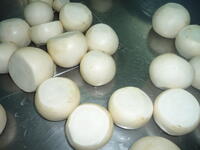 今日の豚汁は、大根の代わりにかぶを、じゃがいもの代わりに里芋を入れました。白菜も入れましたが、今月から野田市産の白菜が登場します。給食では、野田市や千葉県産の食材を優先して使用するなど、地産地消に努めています。今日は白菜の他に、米(黒酢米)・小松菜・味噌が野田市産でした。