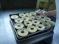 包み揚げは、千葉県産のさつまいもを蒸してからつぶし、りんごと合わせた後に、春巻きの皮で包んで揚げました。粉砂糖をかけて、仕上げました。今日は、米(黒酢米)・卵・小松菜・白菜が野田市産でした。