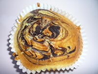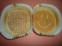 マーブルケーキは、カップに白い生地を入れた後に、茶色い生地を入れ、調理員さんがお箸でグルグルして、マーブル模様を作ってくれました。片付けの時に、生徒がケーキのカップで作ったかわいいアートを発見しました。