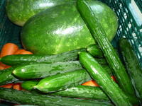 なすのはさみ焼きは、なすに切り込みを入れて、切り込みの間に鶏のひき肉をはさんでオーブンで焼きました。メロンは、千葉県産の「タカミ」という品種で、八百屋さんが食べ頃の甘いメロンを持ってきてくれました。米(黒酢米)・小松菜・味噌が野田市産でした。
