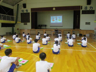 今年度、本校は県教育委員会よりCSR食育プログラムの推進校に指定されており、7月14日に外部講師として株式会社パルミートの方々が来てくださり、食育に関する出前授業を行いました。1時間ずつ全学年で実施しましたが、それぞれの学年で成長段階の違いから、着眼点や質問の内容が微妙に違っていて、県教育委員会の方も非常に関心を持たれました。