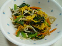 サラダは、野田市産の小松菜で作りました。今日は、他に米(黒酢米)・味噌が野田市産でした。