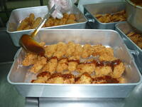 「鶏肉のケチャップ和え」は、千葉県産の鶏肉に下味をつけて揚げた後、タバスコ・チリパウダー・ケチャップなどの調味料で作ったピリ辛なソースで和えました。