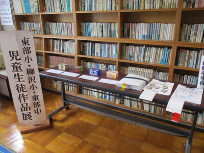 東部公民館が、東部中、東部小、柳沢小の三校の子どもたちの作品の展示会を企画してくださいました。学校の活動の中で子どもたちが作成した作品から代表作品を選び、9月16日から約一週間の間に展示してくださいました。