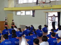 <学校長の話> <壮行会の様子1> <壮行会の様子2>