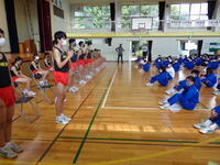 <学校長の話> <壮行会の様子1> <壮行会の様子2>