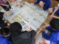 今年度4月から、職員玄関に大きな凧が飾られていました。これはひまわり学級の生徒たちの作品で、学校を訪ねてこられる方々が「すごいね」と驚かれていました。その凧が今週より取り外され、新たな作品の作成が始まりました。大きな作品ですので、教室をいっぱいに使っての作業です。生徒たち同士声を掛け合いつつ、先生たちもいっしょになって作業に取り組んでいました。次はどのような作品に仕上がるのか、とても楽しみです。