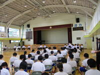 3年生は3,4時間目を使って前日集会を行いました。荷物の点検及び搬入、引率職員の紹介、そして今まで準備してきたことの最終確認を行いました。それぞれ違いはありますが、皆な今から楽しみにしている気持ちがにじみ出ているようでした。