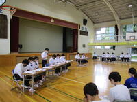 テストが終わった午後、体育館では明日の生徒総会のリハーサルが行われていました。真剣な空気の中、予算案や活動報告を発表する委員長や部長たちの姿があり、確かな成長を感じられる時間でした。明日はいよいよ本番です。初めて参加する1年生、後期からは学校を動かす立場になる2年生、最高学年として、受験生として、お手本として参加する3年生、それぞれの立場で明日は立派な姿が見られると思います。