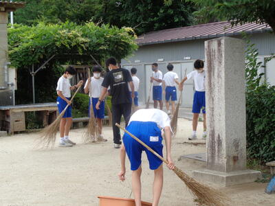 <部室付近の掃き掃除の様子>
