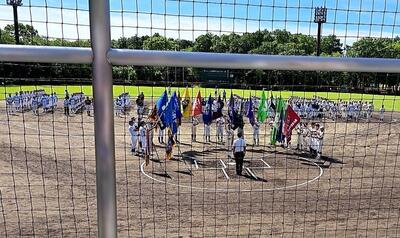 東部中が参加する大会で先陣を切って野球部が7月2日(日)に開会式を迎えました。初日は試合がありませんでしたが、凜々しい姿で入場する姿があり、大会の雰囲気を感じ、緊張感が高まったようです。
