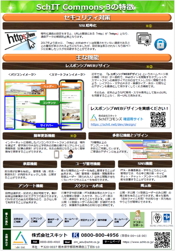 行事予定や部活動・PTA委員会等のスケジュールを簡単に登録・入力でき、カレンダー表示(月・週単位)することができます。公開・非公開(登録ユーザーのみ公開)が選択できるので、保護者等へのお知らせに便利です。