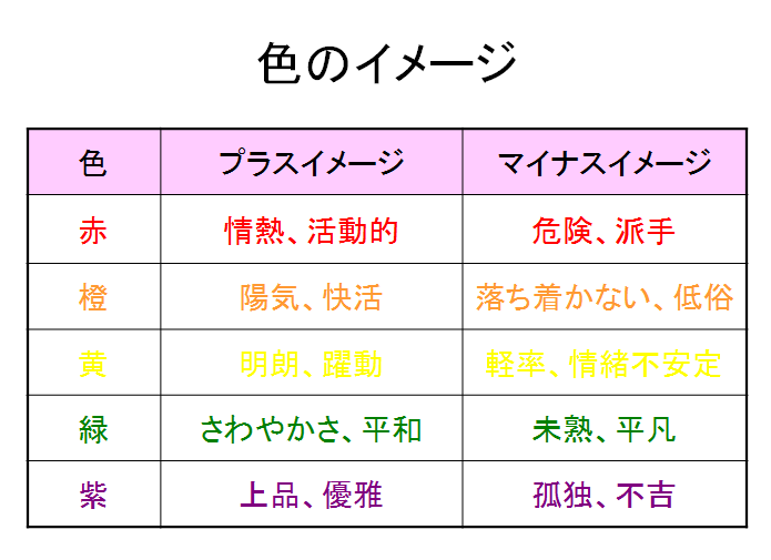 ・プレゼンテーションの内容と配色の持つイメージをあわせる