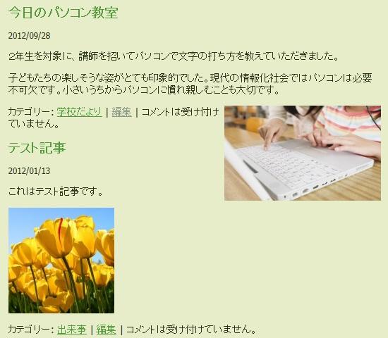 最近の学校ホームページでよく見かけるのが、図1のような前記事の写真が、後記事まで侵入しているケースです。