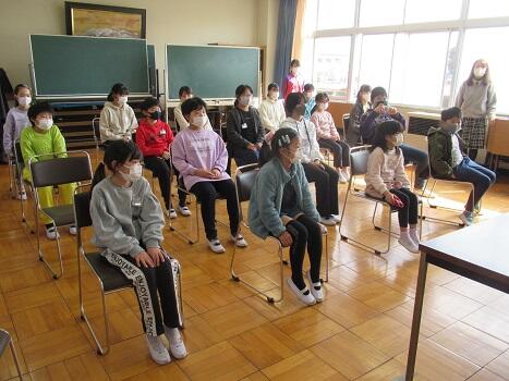 朝の活動の時間に、1~5年生の代表児童が、卒業式の「在校生の言葉」の練習を6年生の前で行いました。日々上手になってきています。