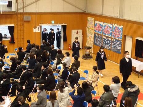 さくら市教育委員会教育長、橋本啓二様のご臨席を賜り、令和3年度卒業式を挙行しました。卒業生はすばらしい態度で,立派に成長した姿を見せてくれました。在校生も教室からオンラインで参加し、見送りも行い、6年生の卒業を祝うことができました。保護者の皆様には、6年間、学校教育活動にご理解、ご協力を賜り、深く御礼申し上げます。本当にありがとうございました。