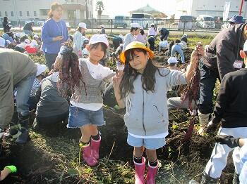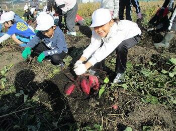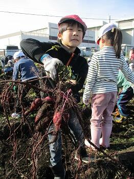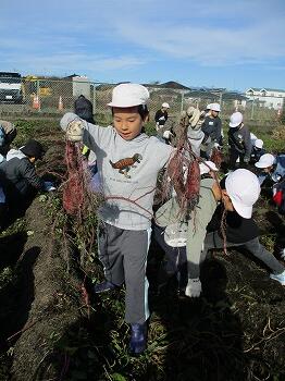 秋晴れの中、ボランティアの皆様のご協力のもと、2年生がいもほりを行いました。