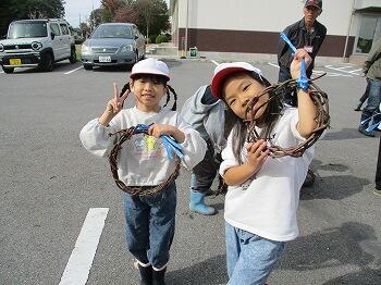 いもほりの後、ボランティアの皆様に丁寧にご指導を受けて、リース作りをしました。