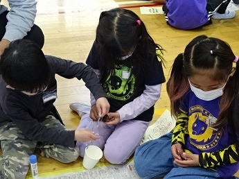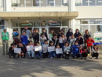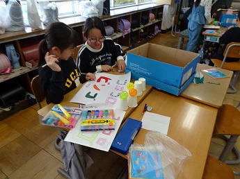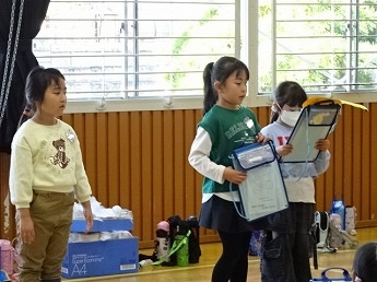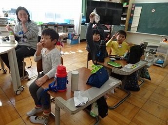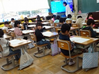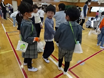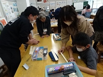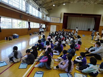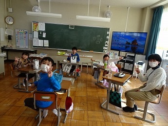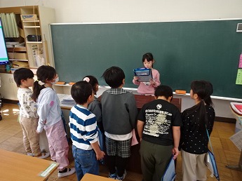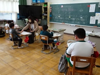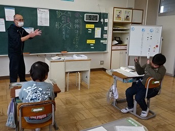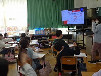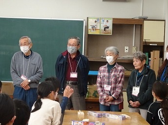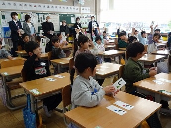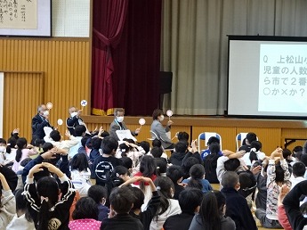 ボランティアさんたちと子どもたちみんなで、上松山小学校に関するクイズを楽しみました。
