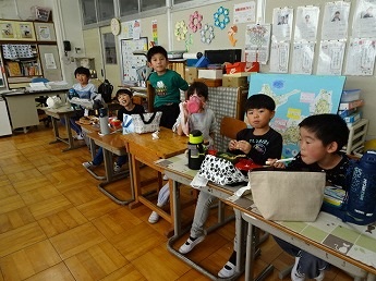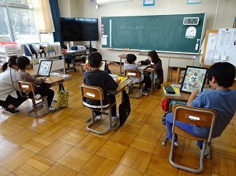 本日の学習の様子です。4組は学校生活について振り返りをしました。5組は押し花の作品にすてきな名前を付けました。