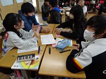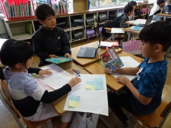 3年生は、1年生に読んでほしいおすすめの本を選ぶために、グループの友達と熱心に話合いをしました。