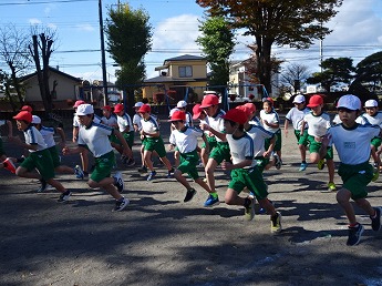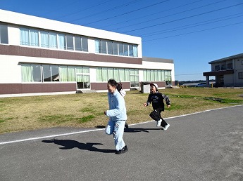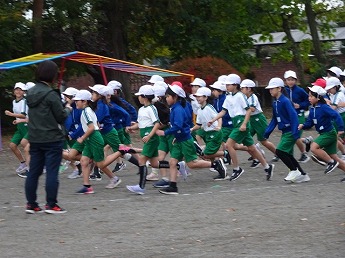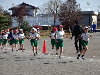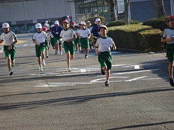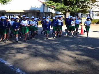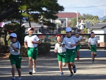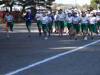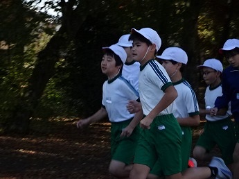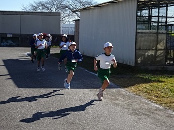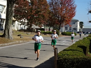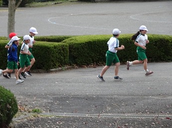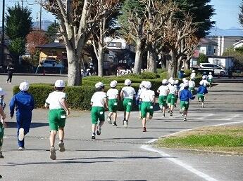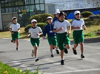 持久走記録会に向けて、自主的に走る子も多いです。互いに競い合い、励まし合いながら、体力つくりに取り組んでいます。