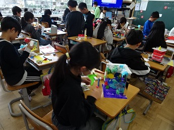 5年生は、図工でミラーシートを使って自分がイメージしたことの映り方を試しながら、制作しました。家庭科では、食事のバランスや栄養について考えたり話し合ったりしました。