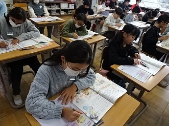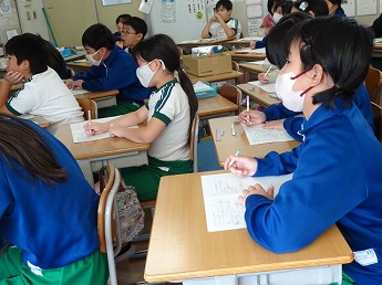 各学級では、朝の学習の時間や復習の時間に、問題に挑戦し、題意の捉え方や答えを導く方法などを、みんなで考えていました。