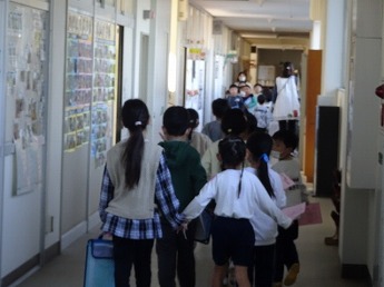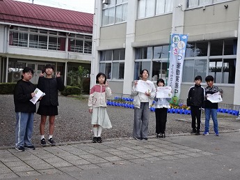 今週はあいさつ強調週間です。11月5日には、地域の方々、民生委員、教育委員会、PTA役員の方方にもあいさつ活動の応援をいただきました。