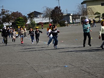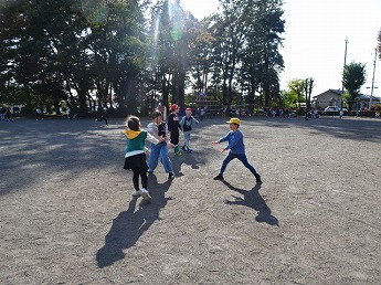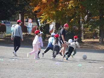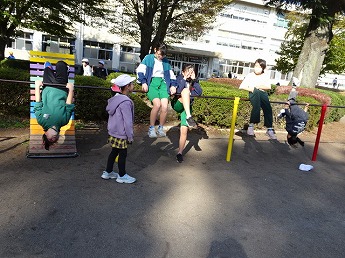 6年生と仲よく遊ぶ低学年の子どもたちは、とってもうれしそうでした。6年生のやさしさが魅力的です。