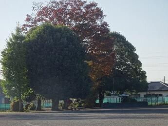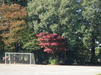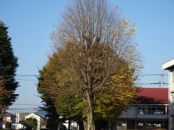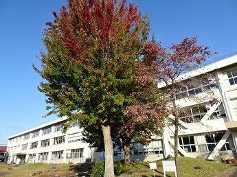 上松山小学校は、緑豊かな学校です。この時期は、ふるさとの森の木々の葉っぱが色づくとともに、落葉を迎えます。