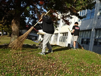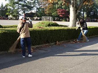 環境整備委員会のご協力を得て、校庭の落ち葉の清掃を行いました。